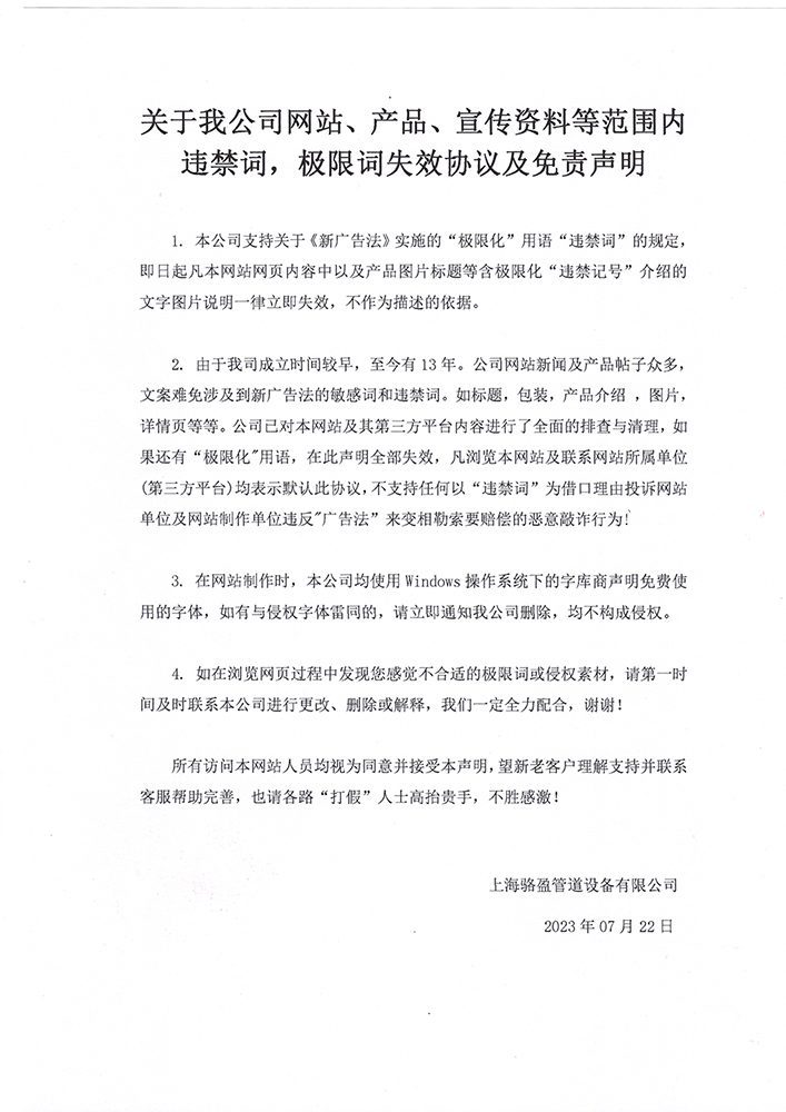 關(guān)于我公司網(wǎng)站、產(chǎn)品、宣傳資料等范圍內(nèi)違禁詞,極限詞失效協(xié)議及免責(zé)聲明
